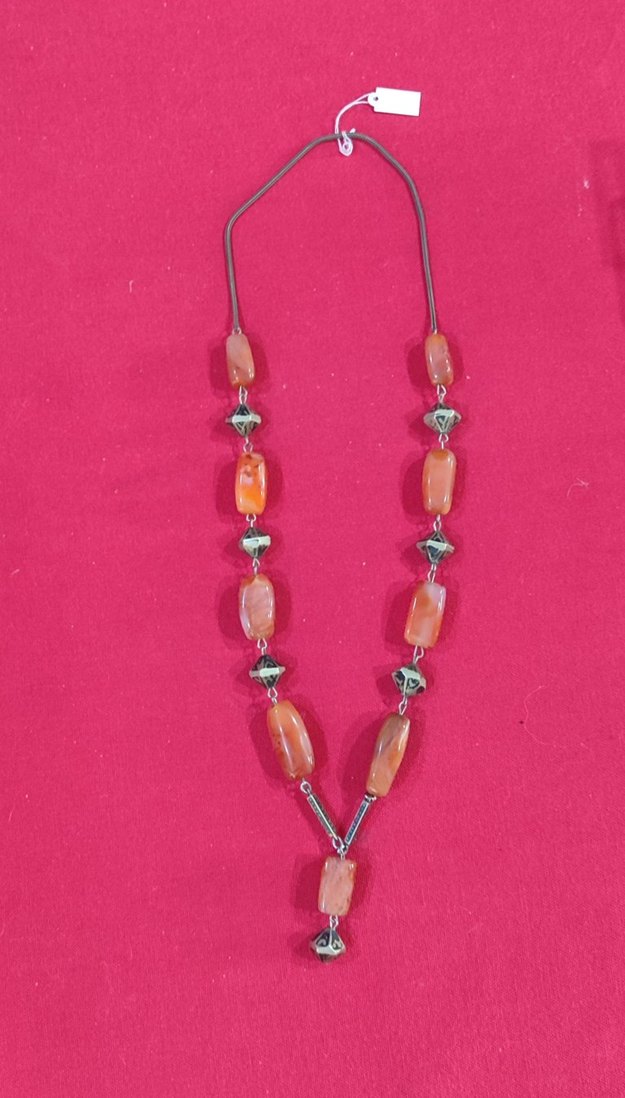 70 lerden, akik taşlar ve metal boncuklarla uzun boncuklu, bohem tarzda kolye. Günlük kullanım için uygun. kolye uzunluğu 60 cm