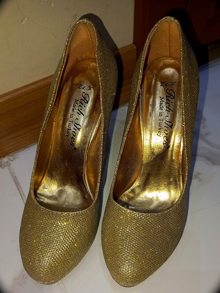 Vintage Altın Rengi Parlak Stiletto Topuklu Kadın Ayakkabı