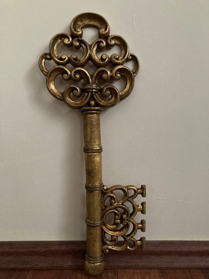 Parlak altın renkte, vintage tarzda ev dekoru anahtarlık, elde boyanıp hazırlandı.