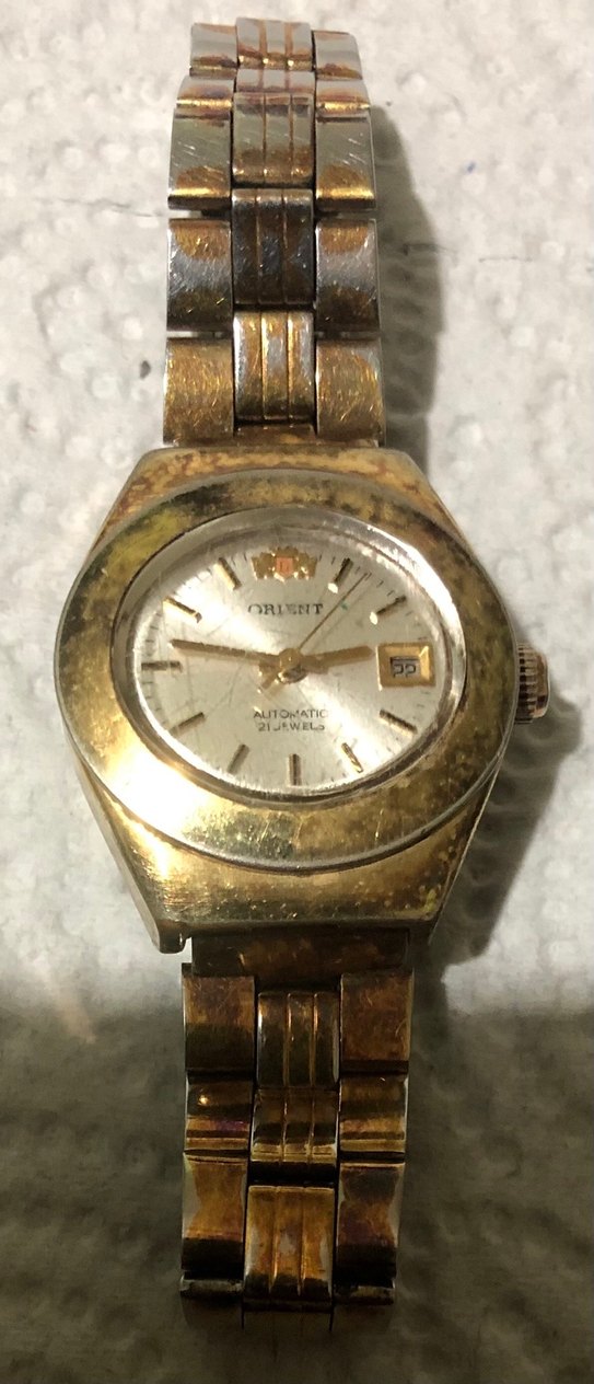Parlak altın renkte, otomatik mekanizmalı ve tarih göstergeli vintage saati. Klasik karşı kültür tarzını yansıtıyor. ⌚