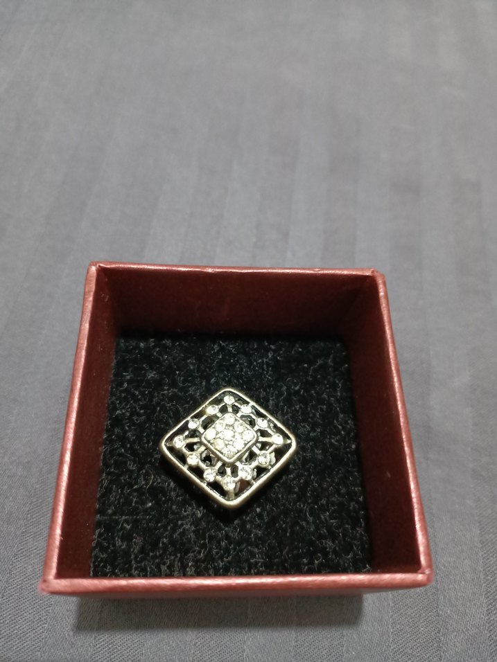 Vintage tarzda, altın renkli payetli ve desenli kadın yüzüğü, klasik zarafet için uygun, düğün gibi özel anlara uyumlu.