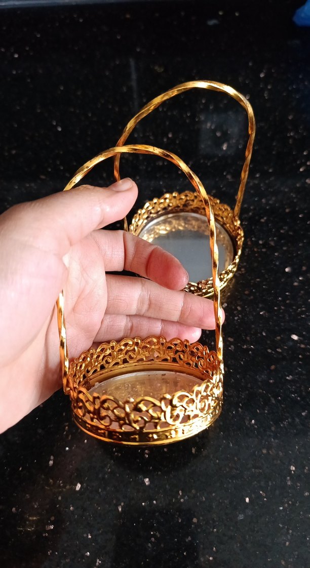 kahve sunumu için uygun, parlak görünümlü vintage altın renkli sekerlik lokumluk Zincir detaylı bohem tarzda. iki tane mevcuttur