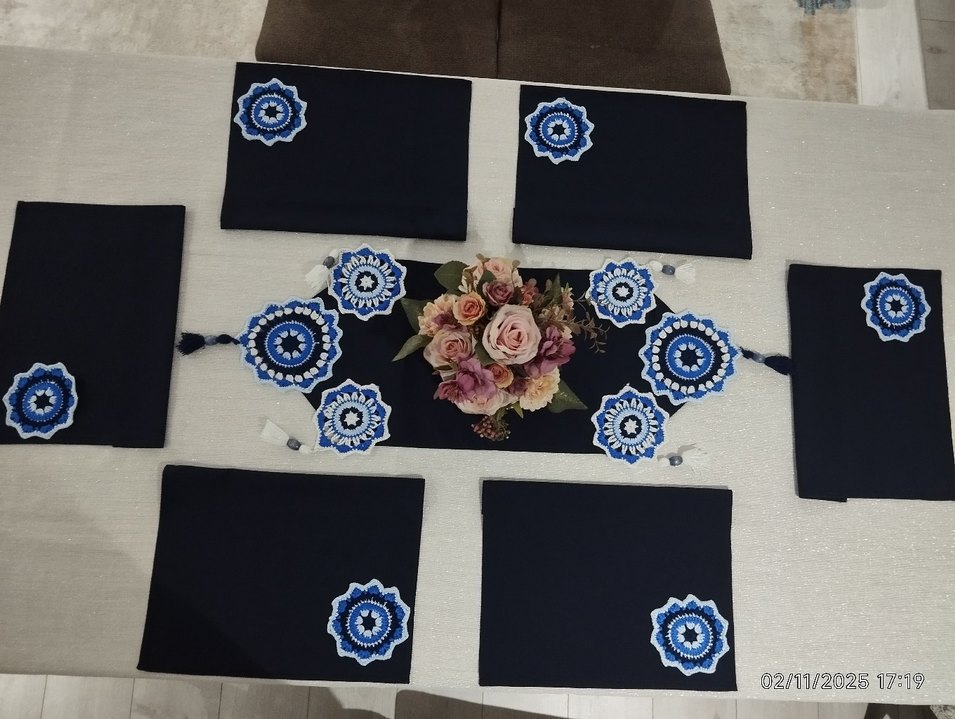 linen keten kumaş uzerine bozulmayan özel iplerle işlenen motifler deniz oluşan çok zarif bir sofra takımımız tüm yemek lerinizi şölene dönüştürecek, sofralarınıza şıklık katacak misafirlerimizi hayran bırakacaktır. Fiyat kare tasarlanan 6 Amerikan servis 1 Runner fiyatı dir. bunlara uyumlu tonlarda köşelerine aynı renklerde motifler konulmuştur bu motifler cep şeklinde tasarlanmış olup kaşık çatalın izi içerisinde servis ederek farklılık yaratır siniz. uygun tonlarda masa örtüsü talep edilirse diğer ilana bakmalısınız. renkler tercihiniz göre farklı olarak tasarlanıp siparişle örülür ortalama 1hafta içinde siparisiniz gönderilir kırışmaz leke tutmaz kumastir.