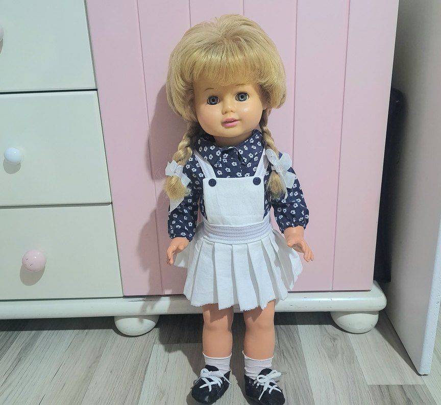 Kiyafetleriyle kusursuz bir bebek. Koleksiyonluk al direk sergile mukemmel nadir bir bebek. buyuk boy. ses varmiydi bilmiyorum ipi cekince ses gelmiyor. Resimlerde ve videoda ayrıntılarıyla çekilmiştir. Daha yuklemedigim birçok depoda ürünlerim var vakit buldukça yüklemeye çalışıyorum. Lütfen takipte kalın ve diger ürünlerime bakmayı unutmayın. Dolabımda daha önceden yüklediğim vintage figurler bebekler oyuncaklar mevcuttur. Belkide aradığınız figür yada oyuncak benim dolabımda olabilir. İncelemenizi tavsiye eder iyi günler dilerim