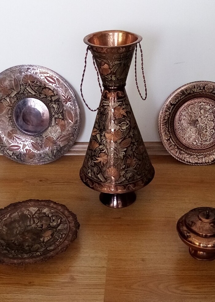 Vintage Antika misali bakır vazo şekerlik duvar süsü