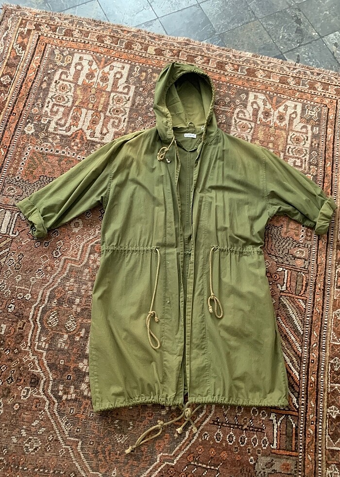 Vintage Askeri Parka, 0 pamuk uzun salaş bir model fotoğraflarda görüldüğü gibi renk solmaları var, düğmeleri eksik kullanıma engel değil ama bunu bilerek alınız iade almıyorum