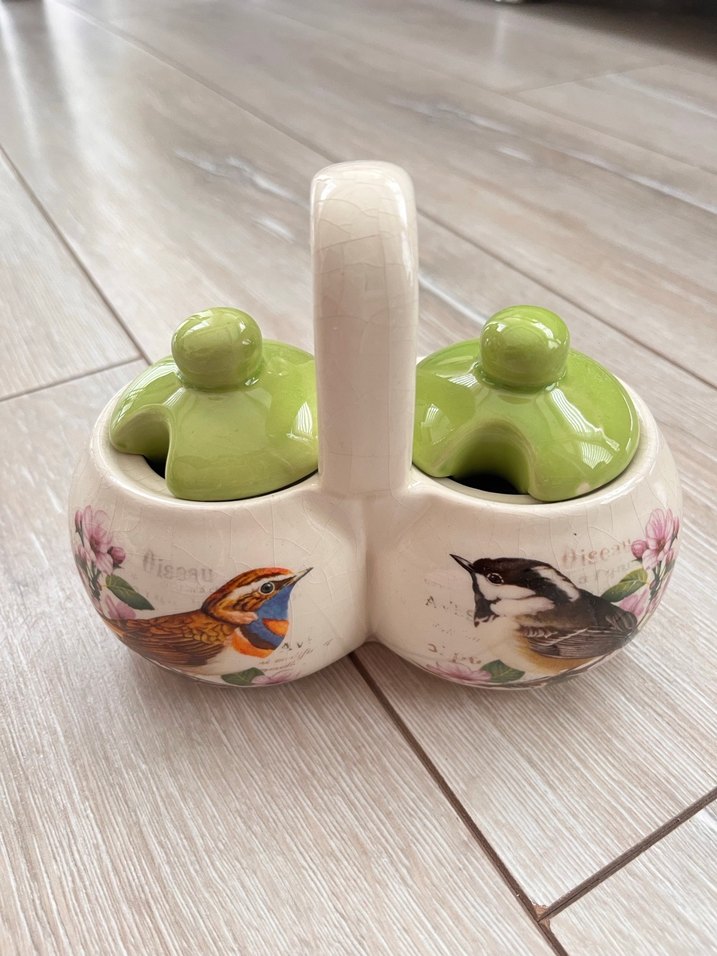 Kuş desenli seramik vintage baharatlık sağlam üründür içleri avuç kadardır küçük değil yani.