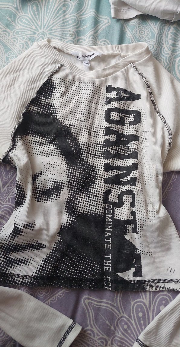 Vintage Baskılı Crop Uzun Kollu
