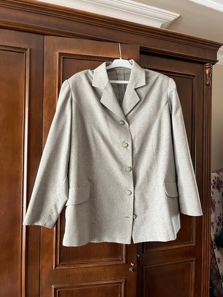 Bej keten kumaştan, düğmeli, normal kesim ve midi boyda kadın blazer. Uzun kollu, yakası kesimli, iş ortamına uygun sade tasarım. Özel dikim olduğu için beden bilgisi yok 40-42-44 bedene olur diye düşünüyorum