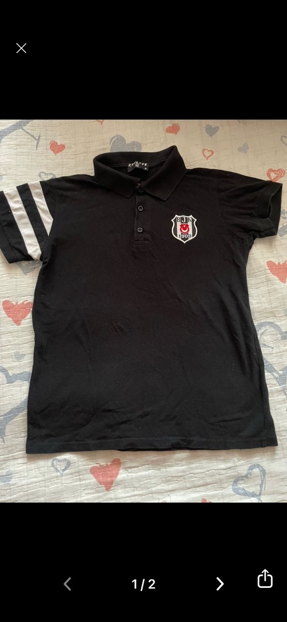 Siyah, kısa kollu, düğmeli yakalı, baskılı armalı ve sentetik kumaştan yapılmış erkek polo tişörtü. Günlük kullanım için uygundur.