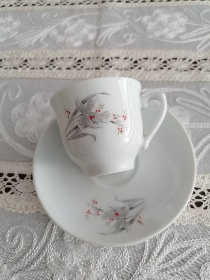 Vintage Beyaz Fincan (1 ad.) Gri çiçek desenli detaylı fincan. ☕