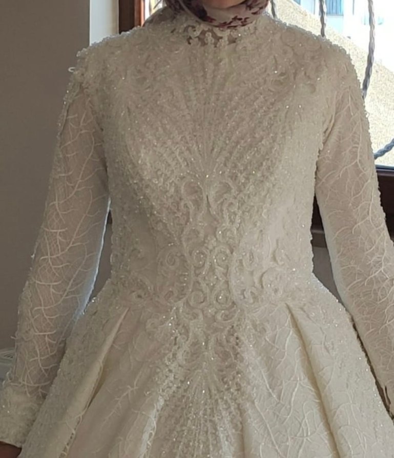 krem rengi yoğun taşlı alt kısmı dantelli istanbul içi elden alabilir 38 40 beden uyumludur. ben 60 kiloyken giydim