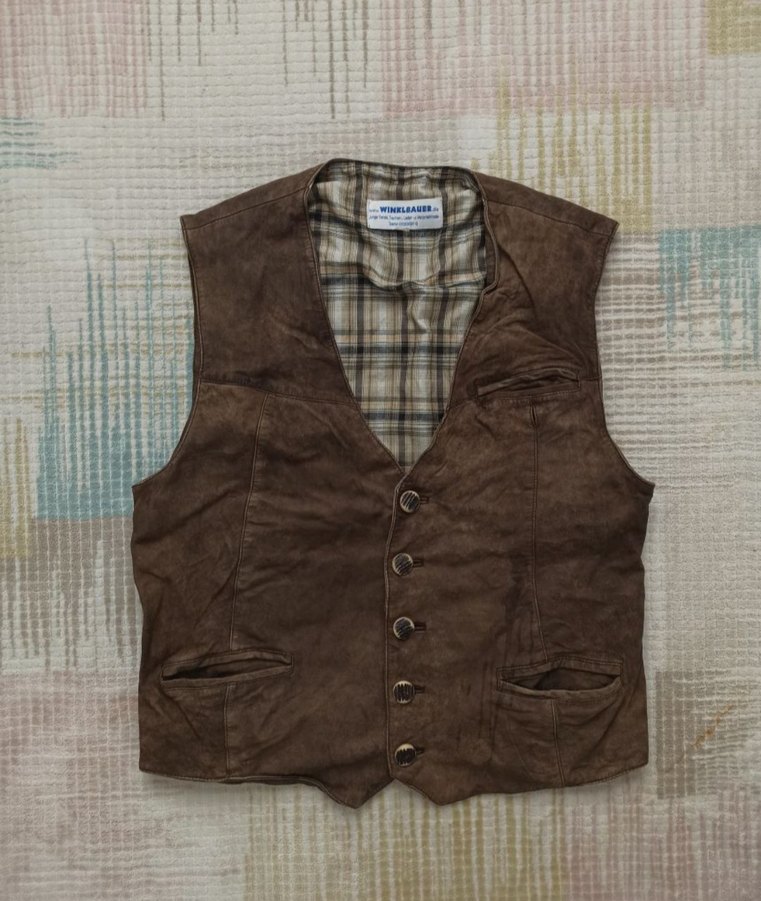 Vintage 90s Brown Winklbauer Biker Original Leather Waistcoat. Alman Üretimi %100 Gercek Deriden Uretilmistir. Cok Guzel Bir Dokuya Ve Renge Sahip. İc Kisminda İki Adet Fermuarli İki Adet Normal Cebi Olmak Uzere 4 Adet Cebi Mevcuttur. Genel Cond'u Harika Sag Ust Cebinin Dugmesi Yok Sadece Kullanima Kesinlikle engel degil. Dimensions/Ölçüler:En:56cm Uzunluk:67cm