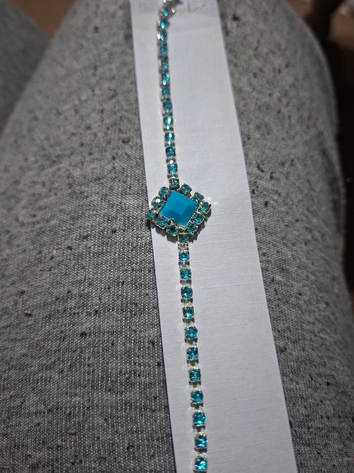 Bohem tarzında, payetli ve parlak turkuaz taşlarla süslenmiş vintage bileklik