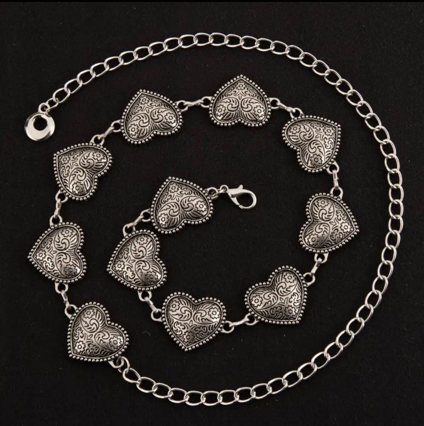 Gümüş renkli kalp figürlü bohem kemer, yeni paketli