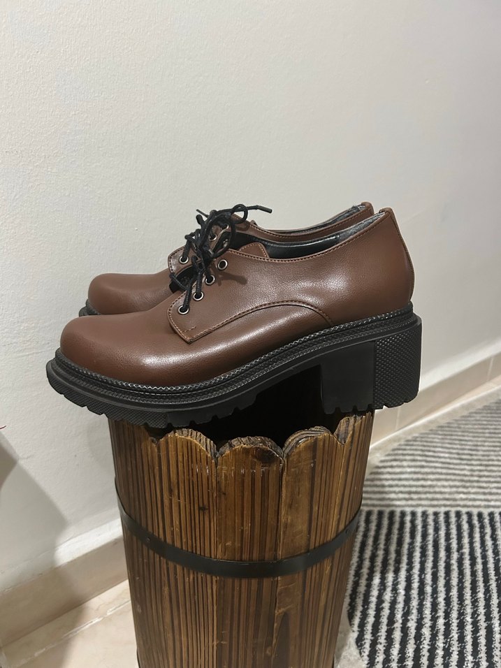 Kahverengi bağcıklı, kalın topuklu ayakkabı. 38 numara. Defosu yok. Tekliflere açığım, sorunuz varsa yazabilirsiniz