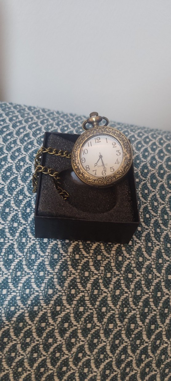 Vintage tarzda, bohem işlemeli koyu altın renkli erkek cep saati, klasik zincirle birlikte.