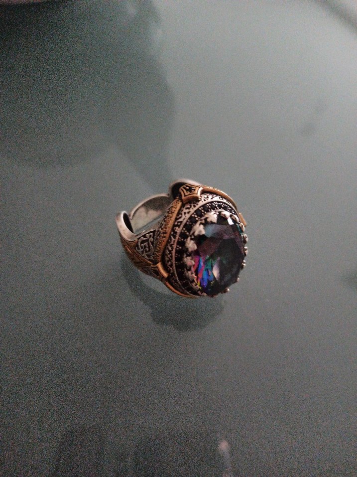 Erkekler için vintage tarzda, çok renkli taşlı, işlemeli bohem stilde eski görünümlü yüzük.
