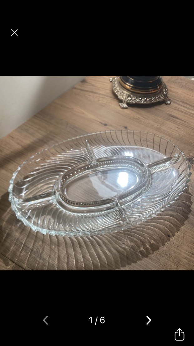 Vintage tarzda, bölmeli cam servis tabağı. Detaylı dokulu tasarımı ile sofralarınıza şıklık katar. ️