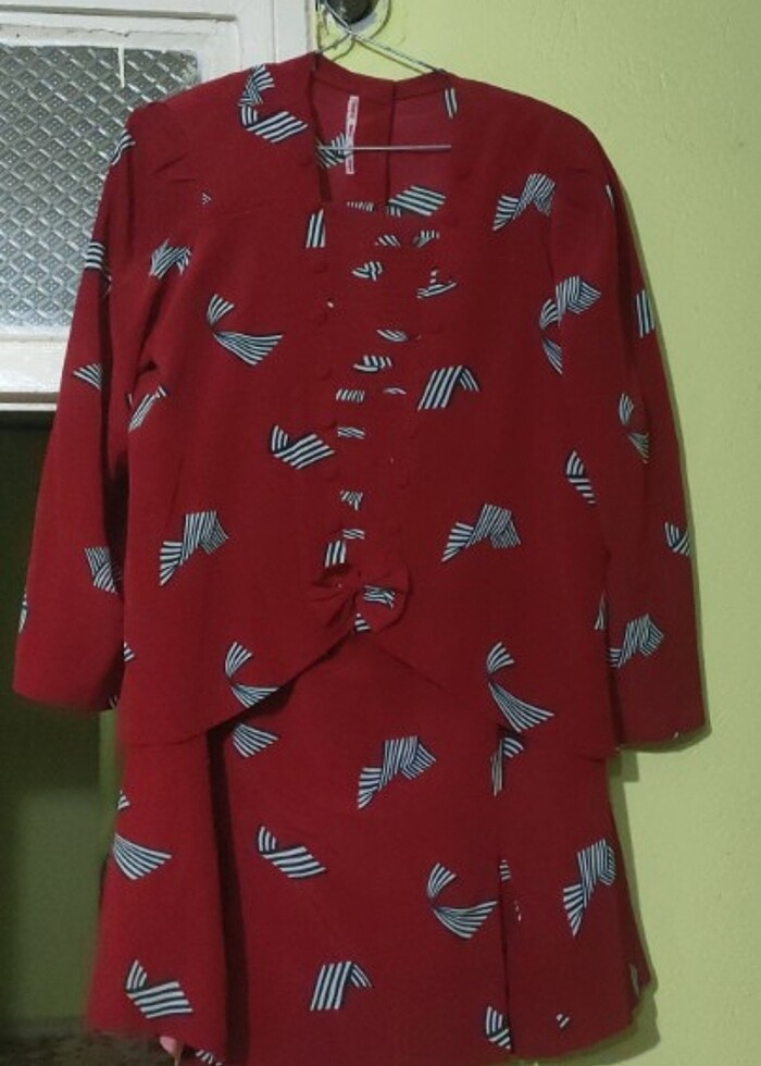 Ürün sadece bir kez giyildi. Fiyat alt üst takım olarak Vintage görünümlü özel dikim bir takımdır. Etekte iki adet a pile ve astarı mevcuttur. Üstte vatka bulunuyor ancak çıkarılabilir.