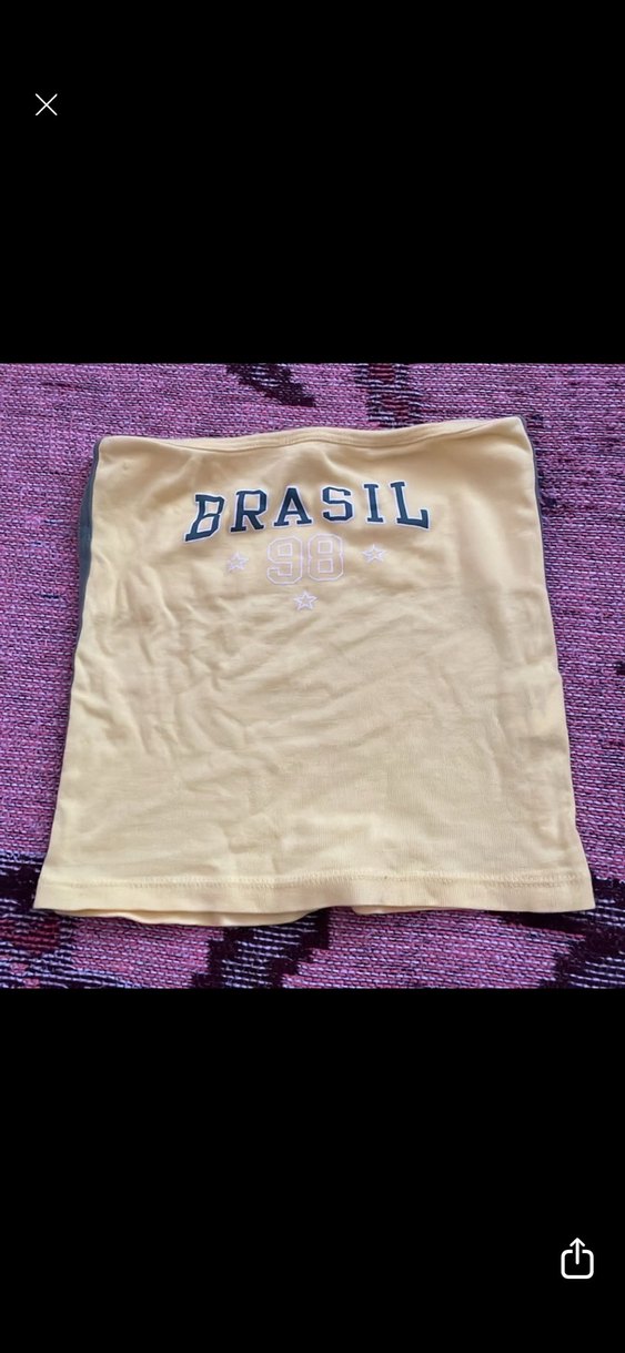 Kısa kollu, sarı straplez kız çocuk tişörtü, 'BRASIL 98' baskılı, fitted kesim ve rahat sokak stili sunar.