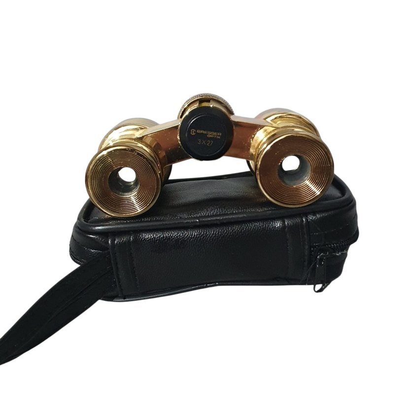 3x27 büyütme gücüne sahip, klasik tasarımlı altın renkli dürbün, siyah taşıma çantası ile birlikte gelir. Vintage Opera Dürbünü