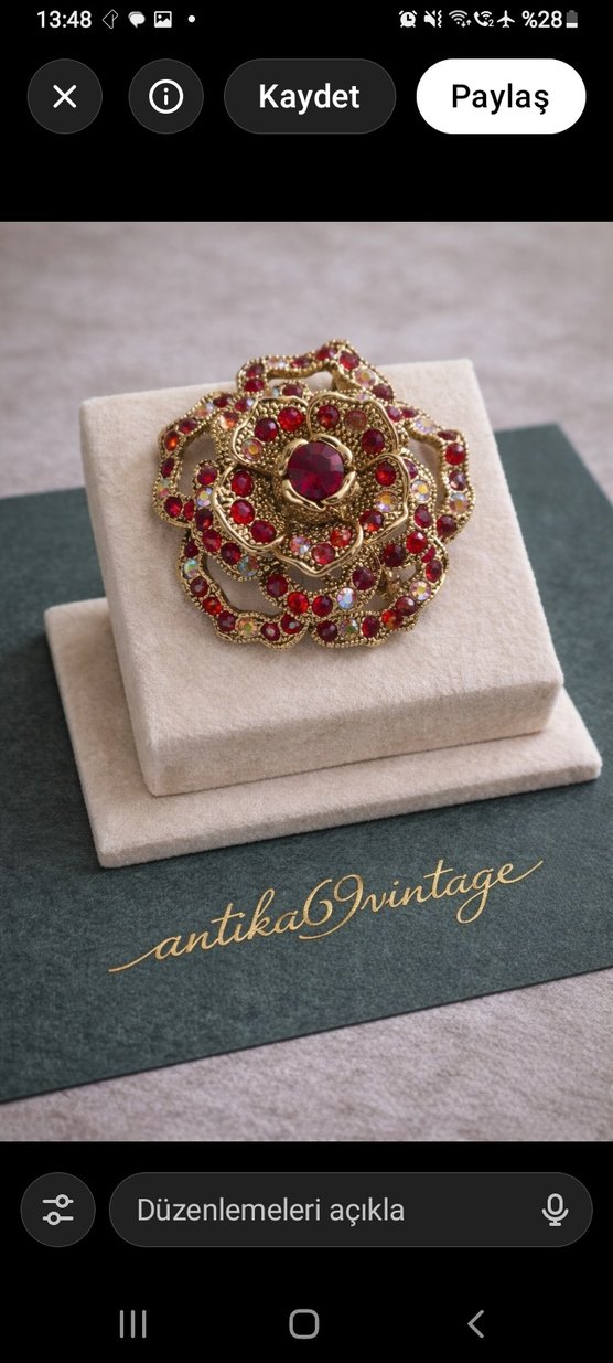 vintage tasarım renkli kristal taşlı çicek montürüyle gösterişli ve çok şık klasik bir parça