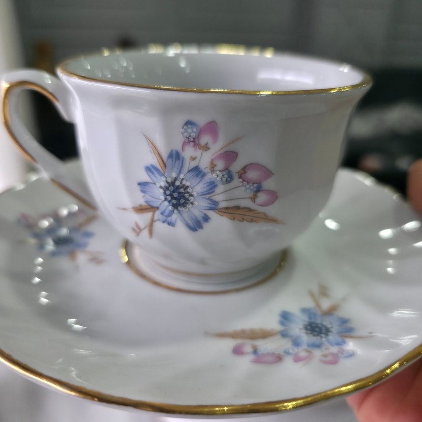 Pastel çiçek desenli, altın detaylı beyaz porselen fincan. Şık ve zarif tasarımıyla çay veya kahve için uygundur. ☕Harika vintage bir set damgalı ve vitrin ürünü, gofreleri ve detayları çok güzel ölçüler mevcut.Seramik değil harika bir porselen damgaya bakarsınız tekli alım 200 2'li alım 400