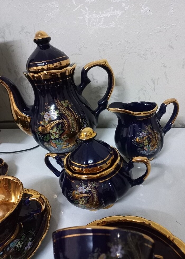 17 parçadan oluşur. 6 adet çay fincanı 6 adet çay tabağı 1 adet sütlük 1 adet şekerlik ve kapağı 1 adet çaydanlık ve kapağı. Ürün yenidir kullanılmamıştır. İyi alışverişler dileriz