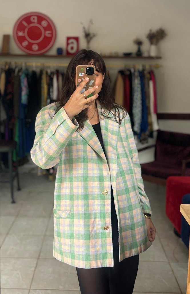 Çok tatlı duruyor Fotograftaki kişi 54 kilo, 162 boyunda. #vintage #vintageetek #vintagetakım #retro #80ler #90lar #nostalji #blazer #vintageelbise #yurtdışıürünü #vatka #vintagekazak #vintagegömlek #vintageblazer #vintagegecelik #vintageceket ##vintagemont #vintagesabahlık #kimono #vintagekimono #vintagebluz #vintagesweatshirt #vintagetrençkot #oversize #kostüm #trençkot #vintageçanta #y2k