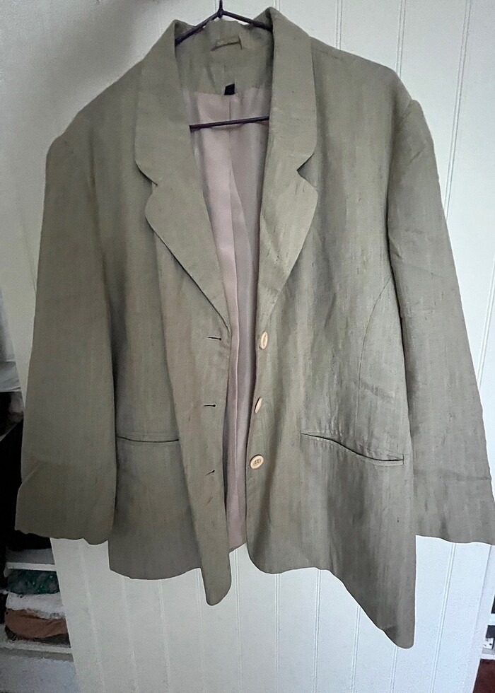 Ketenimsi bi kumaşı var, L beden, bedenim s ama ben oversize olarak giyiyordum, bir kusuru yok, vintage dükkandan almıştım