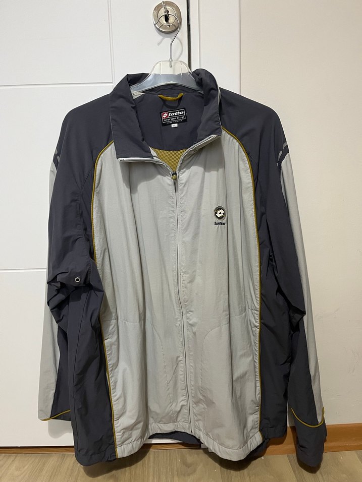 Gri renk, bol kesim, uzun kollu rüzgarlık. Fermuarlı ve yumuşak, spor ve günlük stil için uygundur.