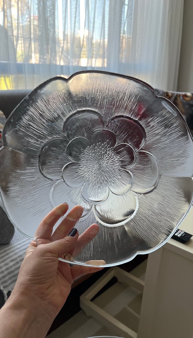 Vintage Çiçek Desenli Cam Tabak