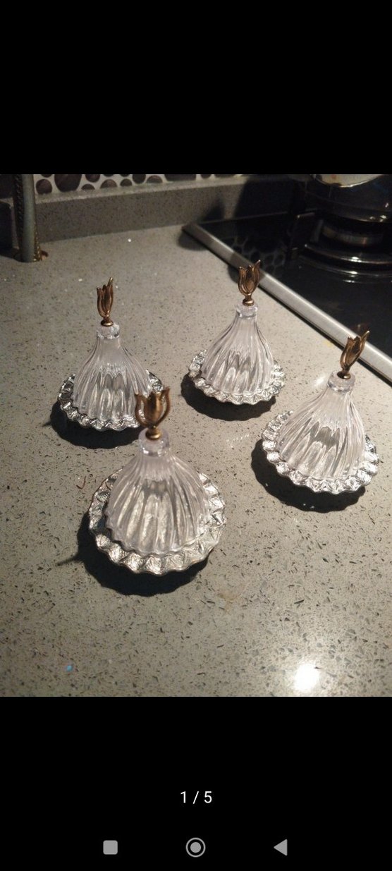 Çiçek desenli, ince altın detaylı vintage tarzı cam tabak seti. Zarif sofralar için uygundur.