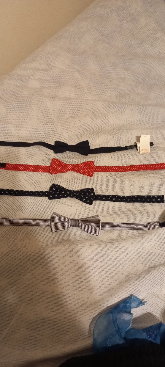 Farklı renk ve desenlerde, vintage tarzda dört adet çocuk papyonu seti, klasik dokunuş için uygun.