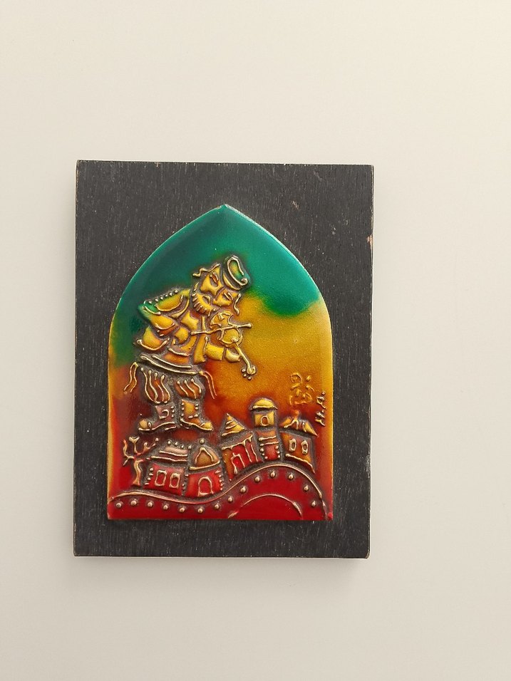 Çok renkli ve koyu zeminli, kemancı figürlü vintage. Geleneksel ve sade vintage tarzda tasarlanmıştır.