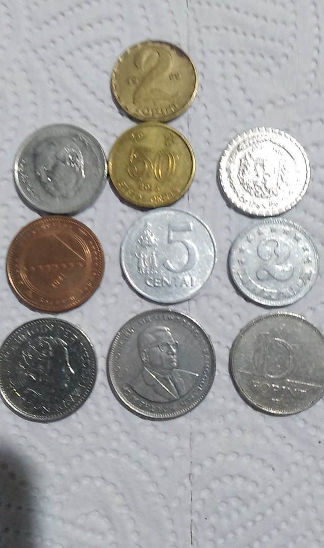 Farklı boyut ve tasarımlarda çok renkli vintage madeni paralar koleksiyonu, retro tarzda.