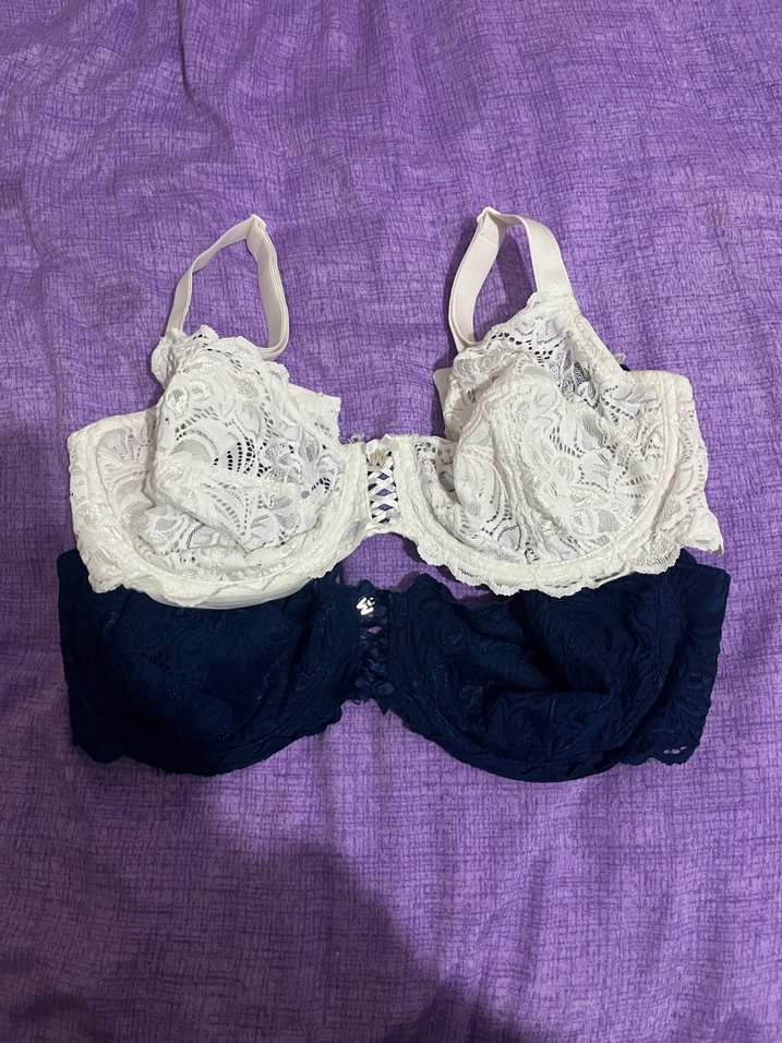 Vintage Dantel Beyaz ve lacivert Sütyen Seti