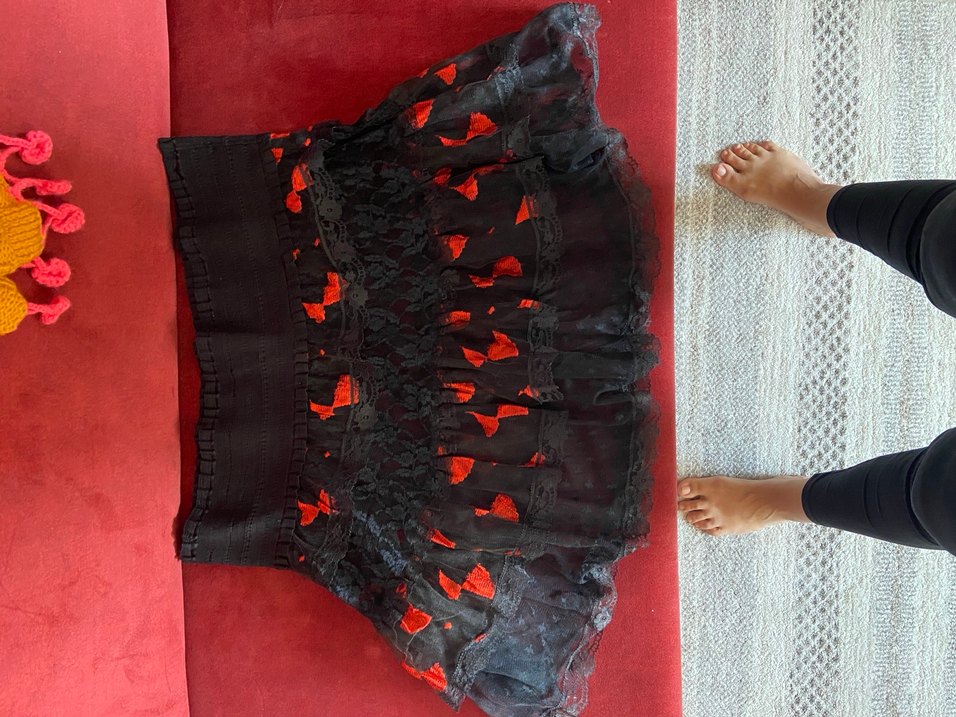 Eski bir etek hiç giyilmedi ama lastiği erimiş onun dışında sorunsuz katlı dantel etek astarsız