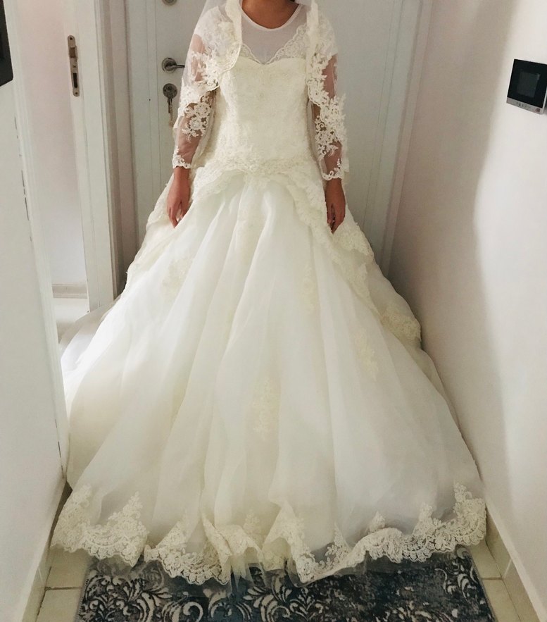 Vintage esintili prenses modeli, straplez yaka ve uzun dantel kollara sahip. Uzun etek uçlarında dantel detayları ile klasik zarafet sunar. Kuru temizleme yapılmalı Çok güzel zarif dantel ve taş detaylı harika bir gerilik 38 40 42 bedene kadar olur arkasında pay var bedene göre ayarlanıyor iple satış amaçlı alındı alıcısına hayırlı olsun