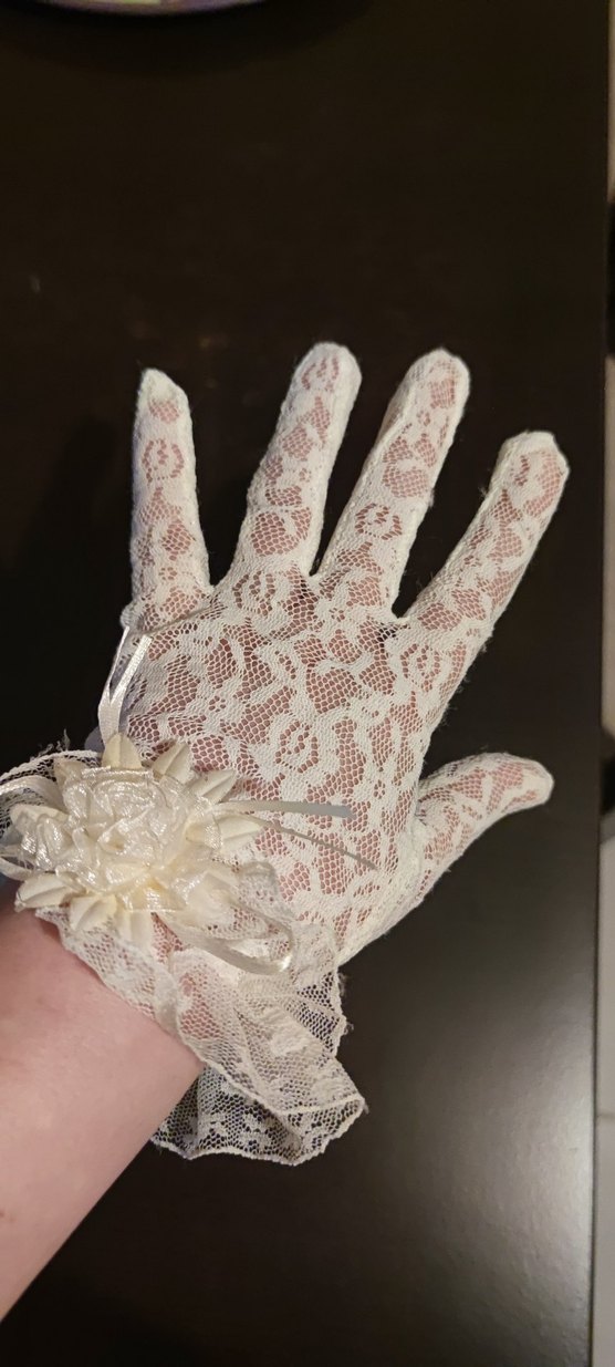 Beyaz dantel kadın eldiveni, örme kumaş hissi ve vintage bohem tarzıyla çiçek süslemeli. Kırık beyazdır. Yarım saat kadar kullanılmıştır.Kese yanında hediyedir.