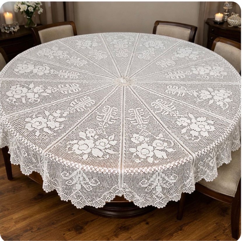 80’ler çeyizinden modası geçmeyen el emeği, çiçek motifli, yuvarlak masalar için salkım kenarlı dantel masa örtüsü ✨ Son karede gösterilen minik lekesi dışında hiç kullanılmadı sandık bekledi. 10 dilim uçtan uca 140 cm. İlk fotoğraf bir boy büyük modeli göstermek içindir. #retro #vintage #dantel #masaörtüsü #dantelmasaörtüsü #salontakımı #elemeği #handmade #peçete