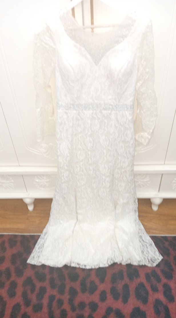Vintage Dantel Uzun Kollu A Kesim abiye Gelinlik