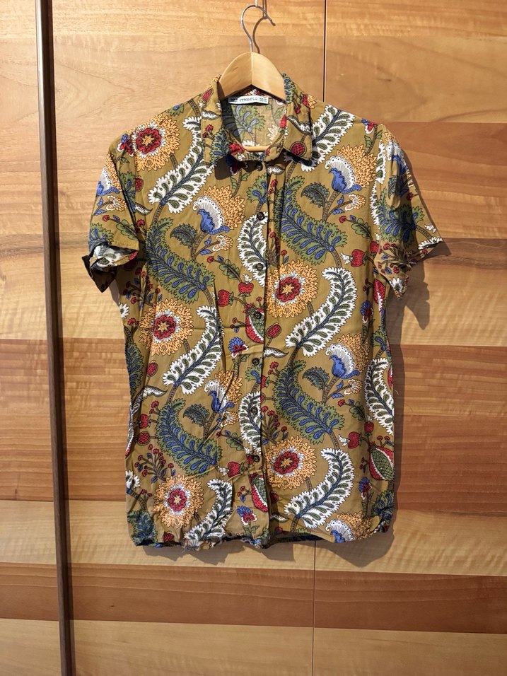 Vintage Desenli Kısa Kollu Gömlek – Misell (XL) Göğüs: 52 cm Boy: 71 cm Canlı renkleri ve özel vintage deseniyle dikkat çeken kısa kollu gömlek. Kumaşı iç göstermiyor, oldukça rahat ve hafif bir yapıda. Herhangi bir yırtık, leke veya deformasyon yoktur. Oversize sevenler için M–L bedenlere de uyum sağlayabilir. • Desenleri canlı ve solma yok, birkaç kez giyildi.