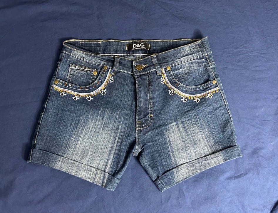vintage Dolce&Gabbana Boncuk İşlemeli Lacivert Kot Şort