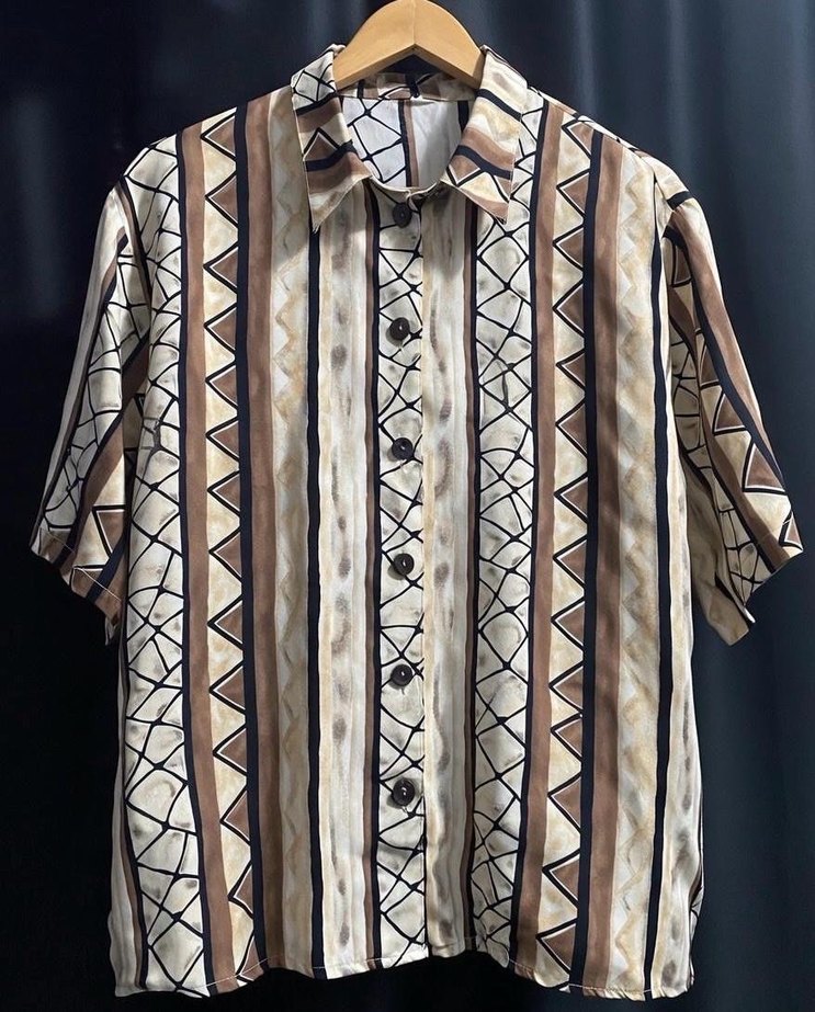 Vintage Desenli Gömlek Retro Desen Beden: M-L Uygun En: 61 Boy: 70 Durum: Temiz, vintage ürün