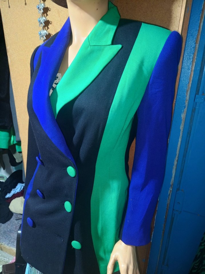 gerçek bir vintage sadece sizde olacak olan yeşil mavi düğmeleri de kumaştır sorunsuz harika bir kumaş blazer