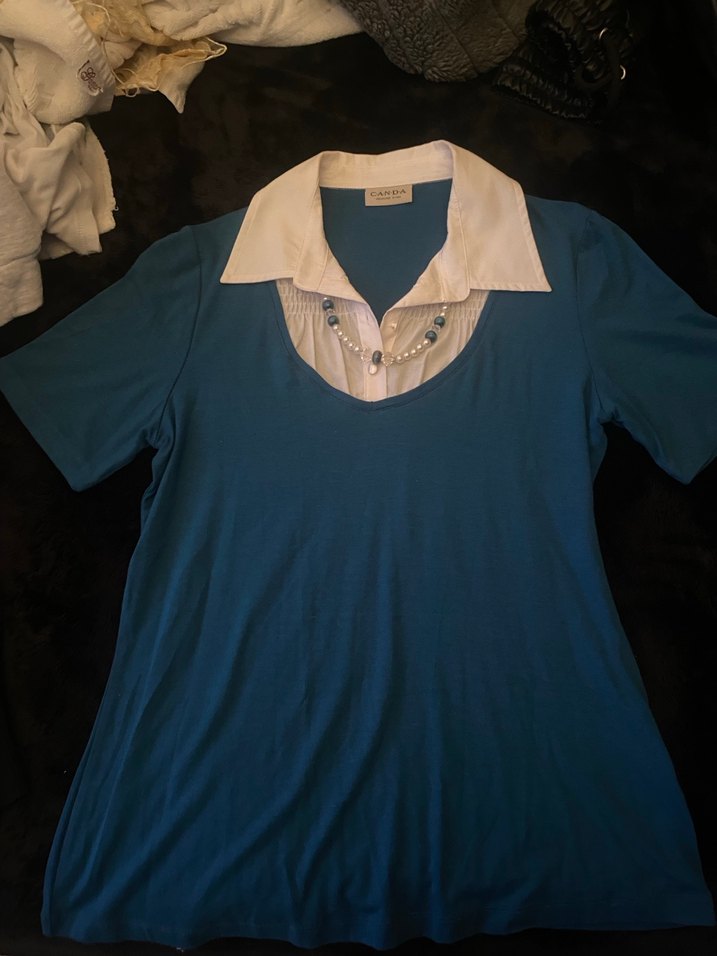 Almanyadan gelme.Düğmeli, yakalı ve kısa kollu, pamuklu kumaştan yapılmış mavi renkte rahat kesim tişört. Günlük sokak stili için uygundur.