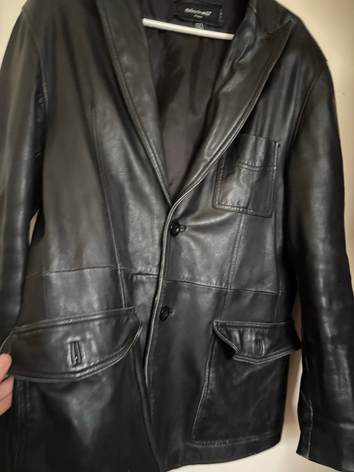 Düğmeli siyah deri erkek ceket, klasik biker tarzında, normal uzunlukta ve uzun kolludur. Ofis kullanımı için uygundur.Satın almadan önce boy kilo belirterek ürün uygunlugunu kontrol edebilirsiniz. #vintage #retro #street #oversize #urban #hondíe #90s #usa #bomber #in im #man #biker #college #nfl #y2k #urbanoutfitters #vintagegiyim #baggy #vintage #boho #bohem #etnik #şıkgiyim