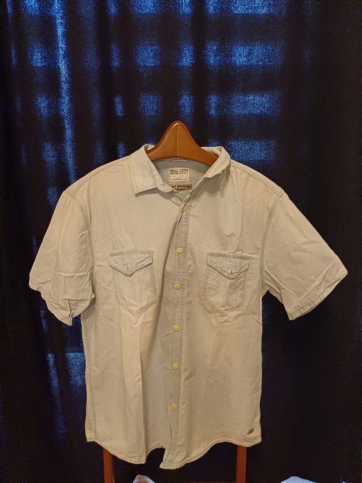 Erkekler için keten kumaştan yapılmış, yakalı ve düğmeli kısa kollu rahat kesim beyaz gömlek. Göğüs cepleri günlük kullanıma uygun detaylar sunar.